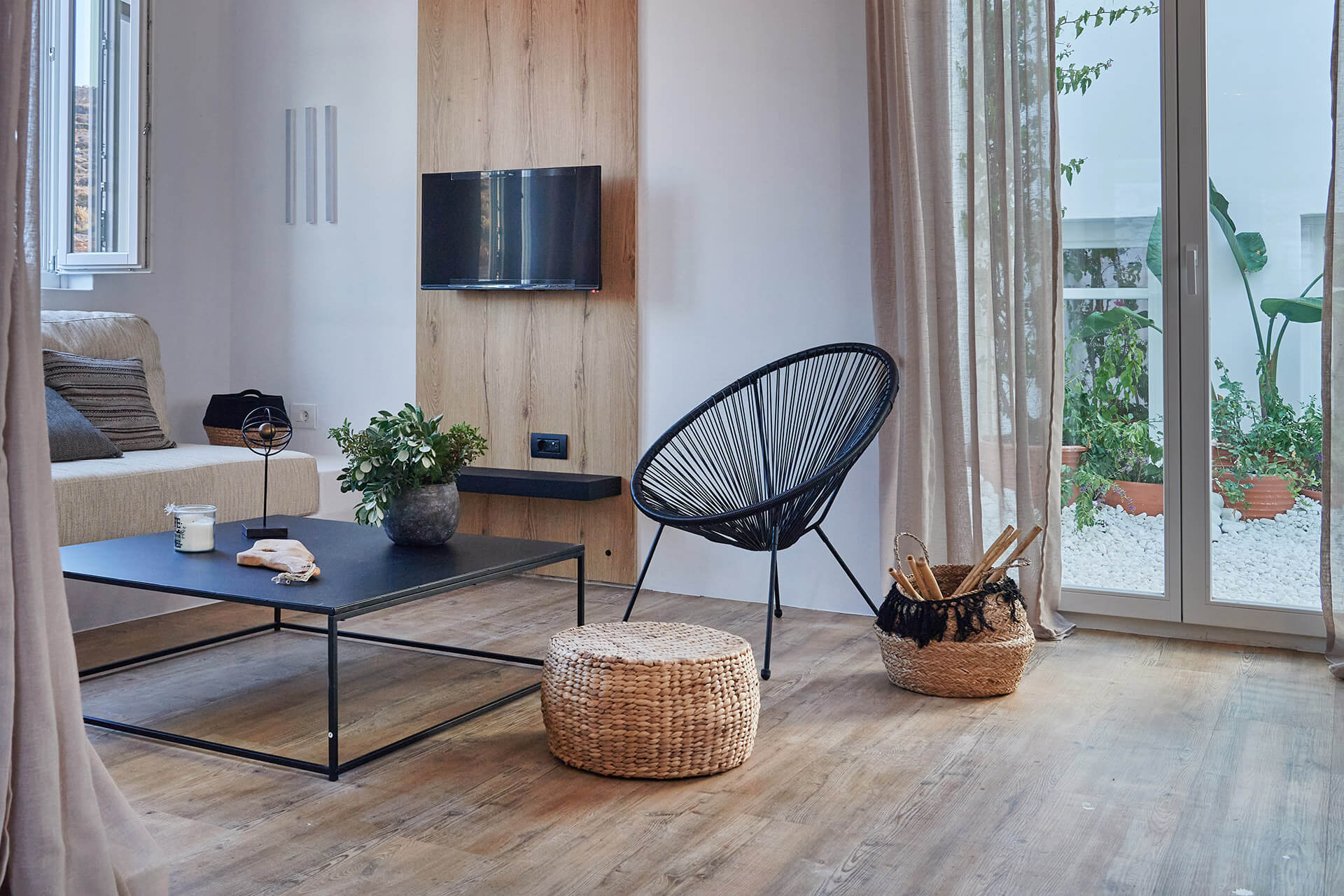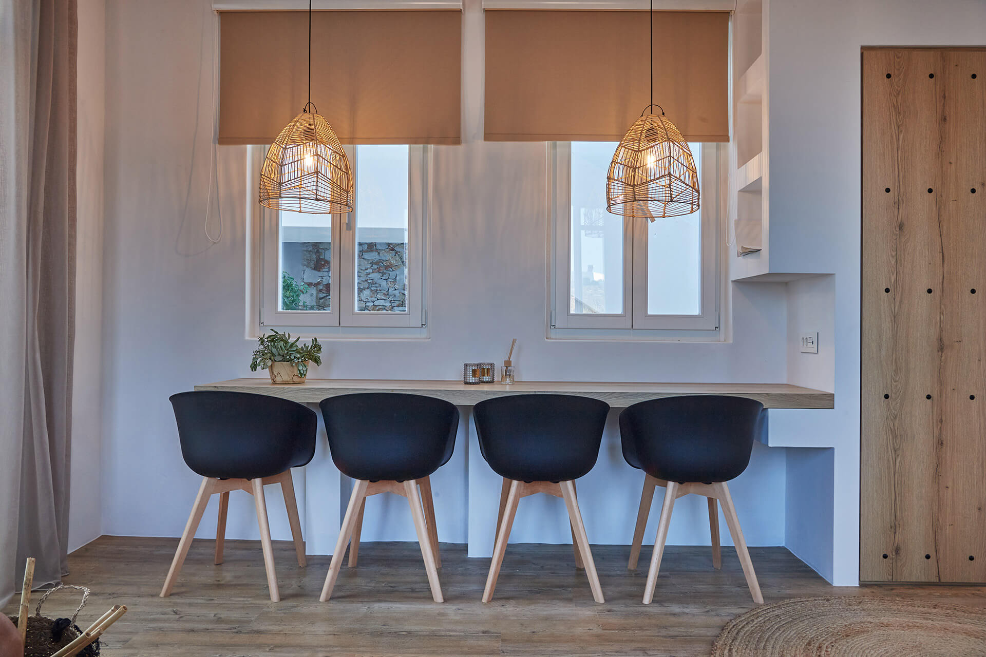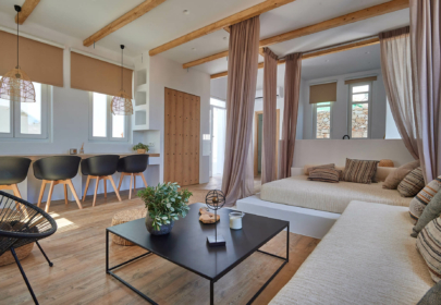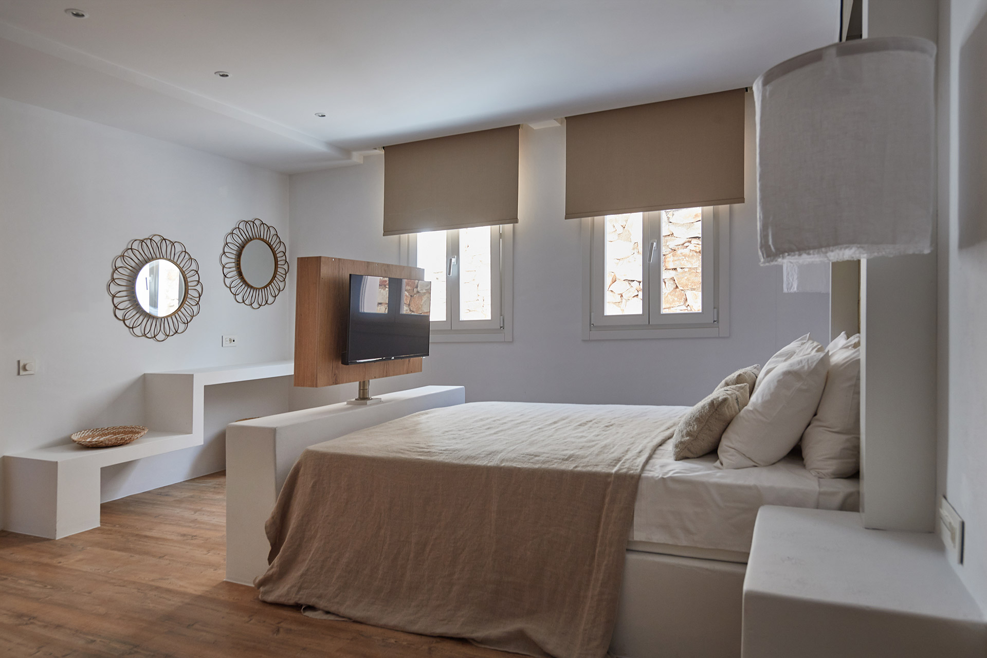 Contemporary and sophisticated apartment in the heart of Naoussa, within a luxury complex of four maisonettes with a shared terrace, but with complete privacy in the lounge area and jacuzzi.