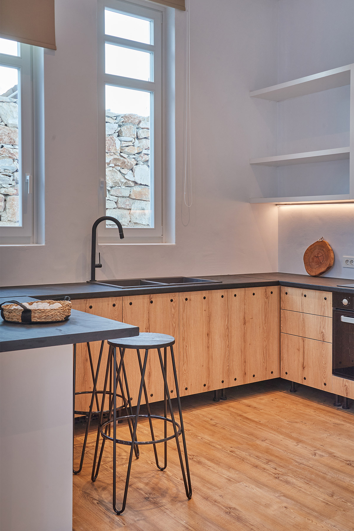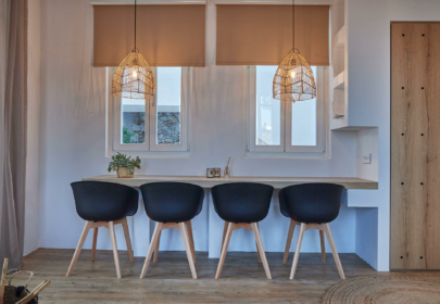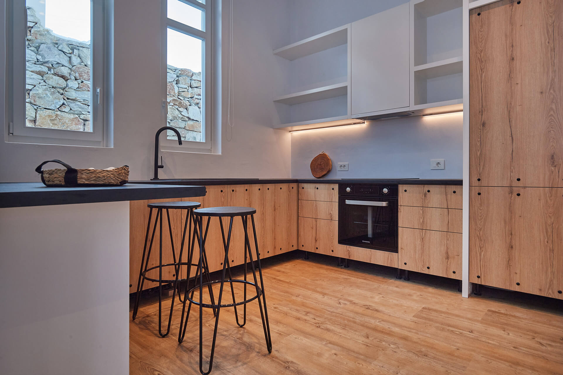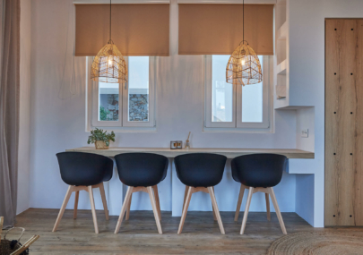 The town of Naoussa, where you will find all of the modern conveniences you need during your vacation —from shops and restaurants to cafes and banks— is just a few minutes’ walk away from the apartments. Parking spots are available outside of the complex.